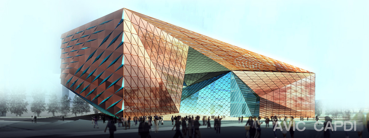 “金鑲鉆”的新成都市立博物館面積為7.2萬平方米,將覆蓋天府廣場的整個西邊角。建筑外圍是一層堅固的銅合金板,包圍在一層網格狀的透明“面紗”之外,使得外層有一種深金色的色彩。“到了晚上,網格會更加透明,把金色的光芒傳出去,為四川傳統的皮影戲投下背景。” 建筑內層用各種切口和空洞來界定,大塊玻璃建造的南立面將光線和景觀帶入到內庭。